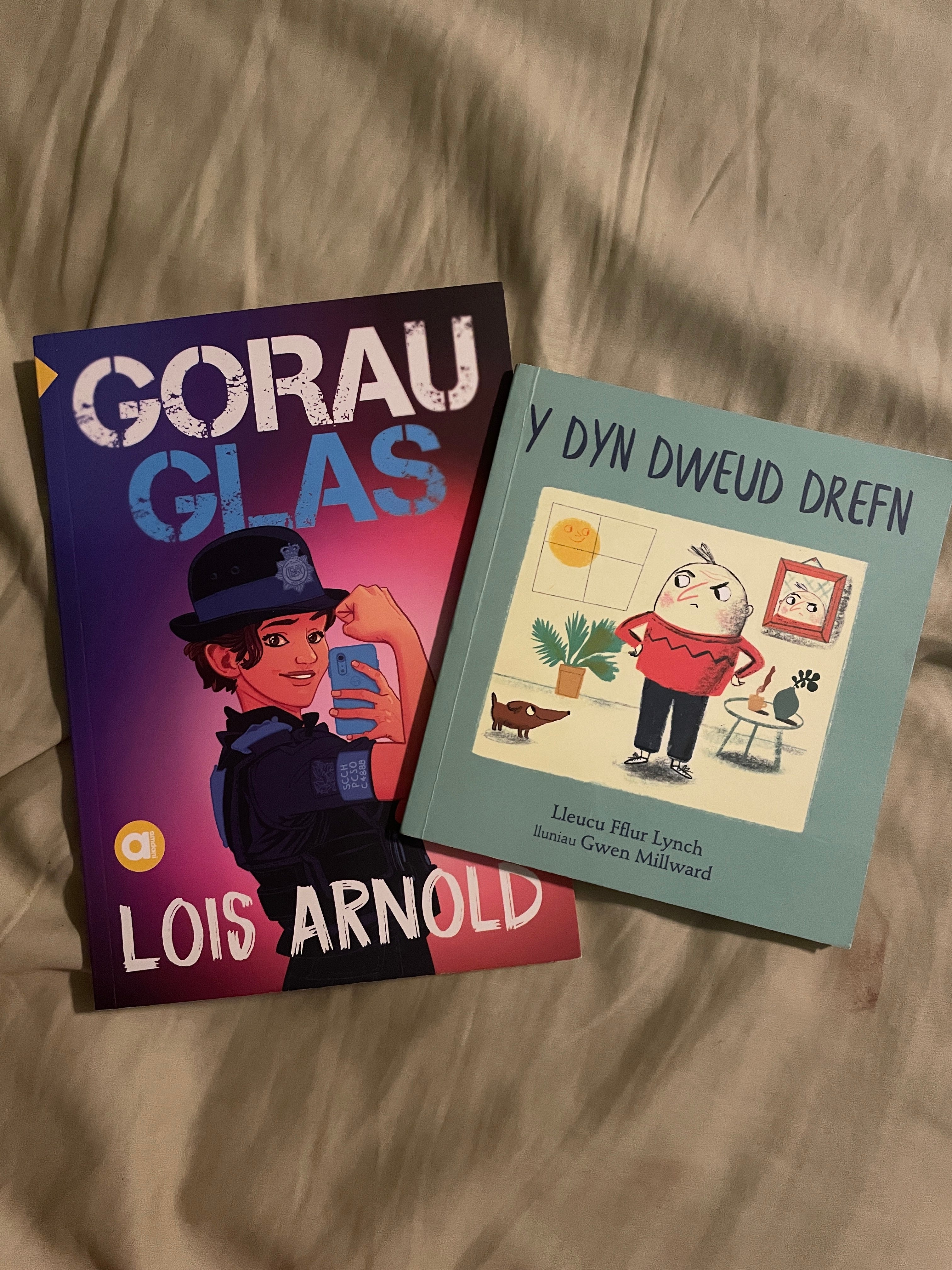 “Gorau Glas” is possibly the cutest cop propaganda I’ve ever read. If I had a dollar for every Welsh book I’ve read focused on cops, I’d have two dollars, which isn’t a lot but it’s still weird to me that it’s happened twice. “Gorau Glas” follows Alix, a newer officer on the squad in Aberglas and the different cases they solve with their squad. Overall, the story was very cute, and I found it surprisingly easy to read. I think that was more about the sentence structure rather than any ability on my part, considering my efforts with “Dyn Dweud Drefn”, which were fun, but a bit more challenging. The titular Dyn Dweud Drefn (Either the man who tells people off or the orderly man, I’m not quite sure) is frustrated by his inability to keep a daily routine when his life is interrupted and subsequently made quite better by a stray weenie dog that rushes into his home. I found this one to be a bit more difficult to read, but much more heartwarming.